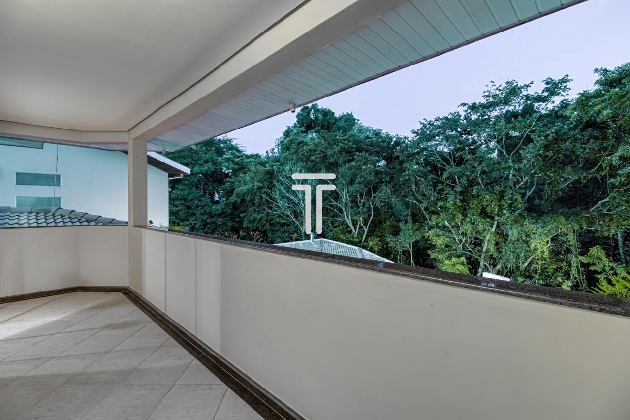 ◾ Varanda com vista para piscina e área verde